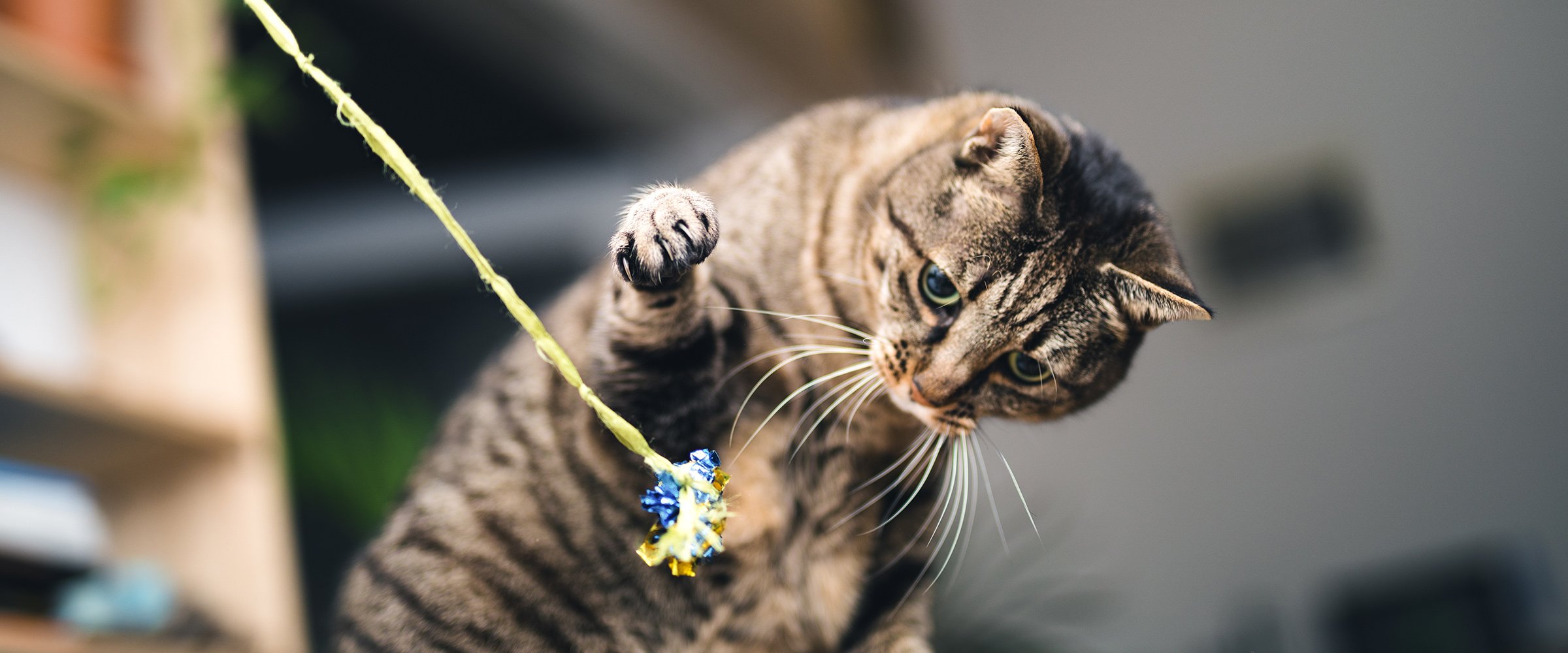 Körperliche Aktivität kann sehr hilfreich sein, um Ihre Katze in guter Form zu halten. Jeder Tag mit einiger Spielzeit bewirkt, was den Prozess der Verbrennung von überschüssigem Fett noch weiter beschleunigen kann. Erwachsene Katzen benötigen tagsüber mindestens 20 Minuten Spielzeit. Wenn Ihre Katze nicht besonders gern spielt oder schnell das Interesse verliert, können Sie diese Zeit in einige kürzere Sitzungen aufteilen.